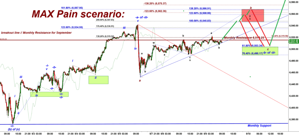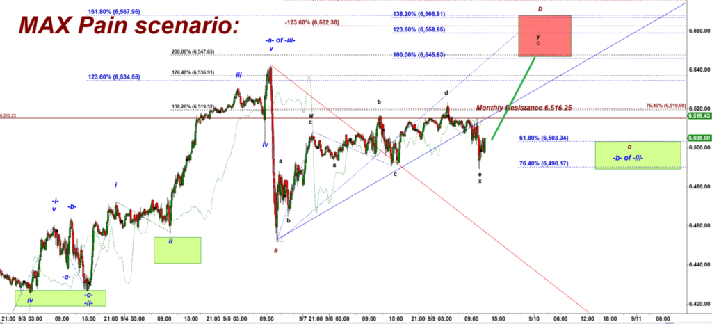 Our micro Max Pain wave count considers that move up as a corrective wave -b- up that can be followed by a quick drop down to the broken monthly Resistance-> turned support = 6,516.25.