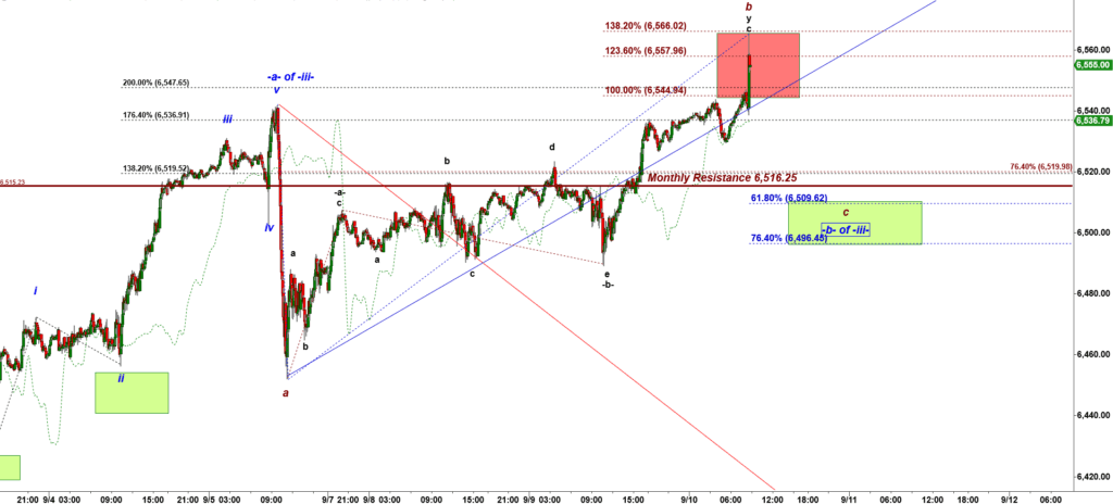 ES-mini 5 min chart posted pre-market on Sep 10, 2025