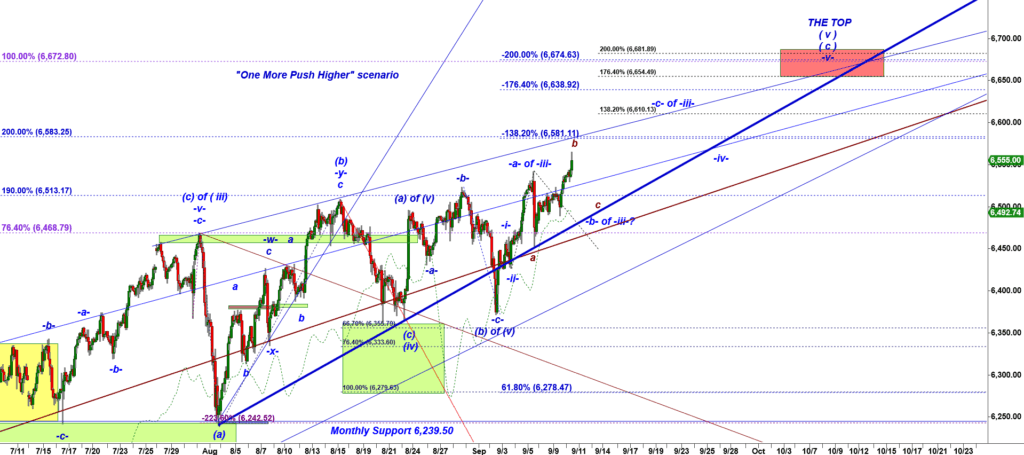 if we get a drop down to the Monthly Resistance / the Mid Line I would get interested in going long again in anticipation of another leg up targeting 6,626 – 6,653.