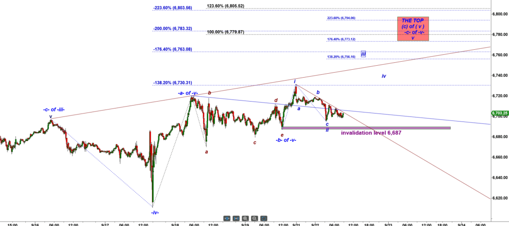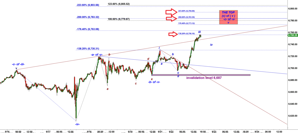 As long as bulls hold ES-mini over that level, bulls will be in control and will be able to produce another micro five wave up structure up top 6,780 – 6,800. The