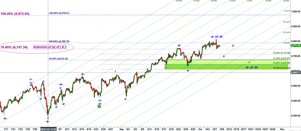 That wave count argues that upon completion of that micro a-b-c- down pullback into the Green Demand zone the rally shall resume and accelerate in -c- of -iii- up targeting 7,050.