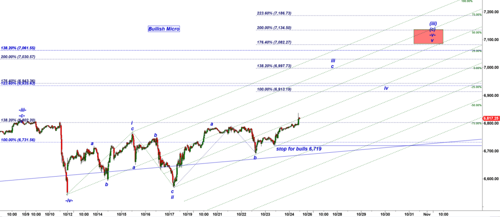 This spike over 6,800 invalidated my bearish scenario. That invalidation made me look for a more bullish alternative wavve count.