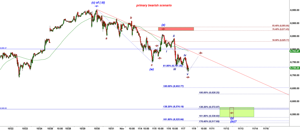 6,587 is a 100% extension of the Month Opening Range. That is the next big support level. Bears can test it in this leg down. Note that we have got a flat consolidation around the key Monthly Support. That is teh standard pattern. We can call it the “gathering pattern”. Its a weak response of bulls to the bearish test of a Monthly Support. When we get a flat and shallow a-b-c bounce off a support that is a bearish sign. That is a sign of lack of buying even after a strong move down.
