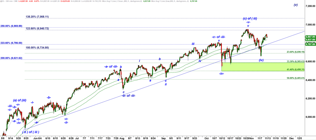 The primary wave count is bullish and allows bulls to push ES-mini up to 7,200: