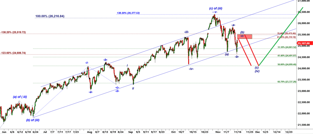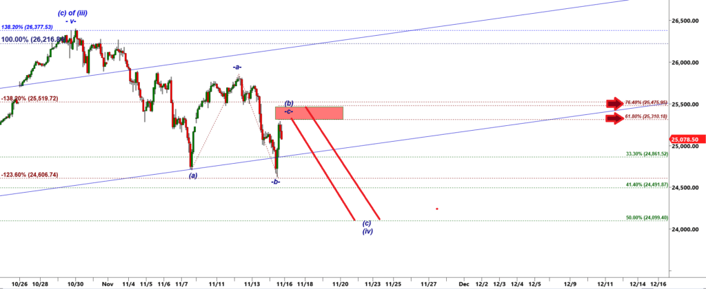 Bears have a very clean short setup to produce another leg down in a subwave (c) of wave ( iv ) down targeting 24,100: