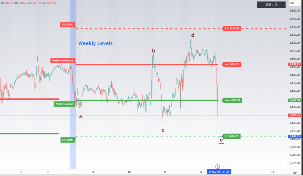 This morning I noted: “If bulls defend the broken-resistance-turned-support 6,893 we should expect a rally to weekly R1 level = 6,938.”.