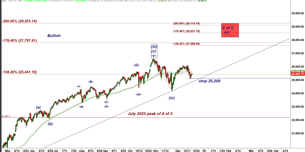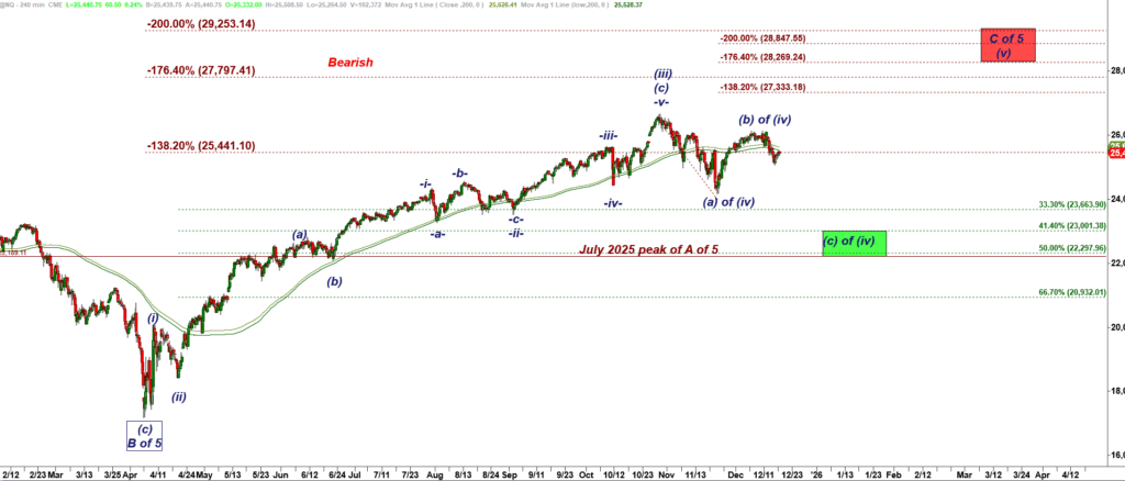 It is possible that the weak rally (so far it has not been able to make new higher highs) off the Nov’25 lows has run out of gas and will roll over. In that case we may get another trip lower in a subwave (c) of wave ( iv ) down: