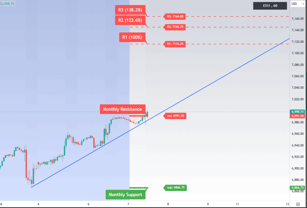 The key resistance is 6,991.50, a new Monthly Resistance for Jan 2026.