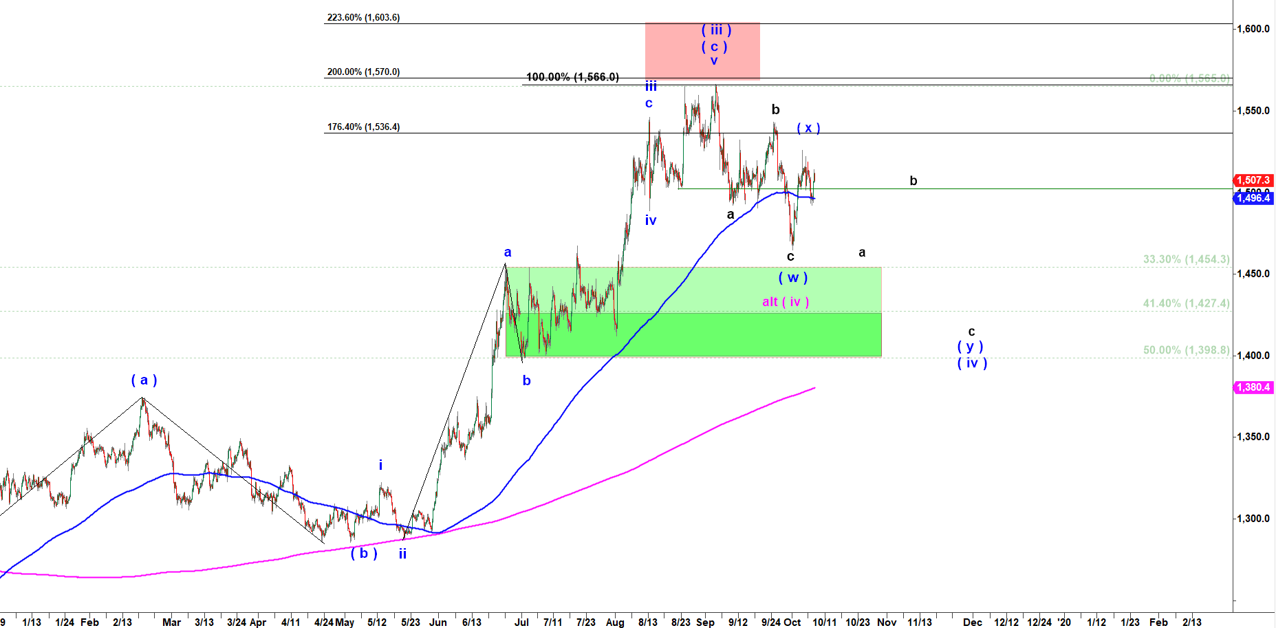 Gold was adding around 1% this morning and since then has lost significant part of that move up. I do not change my bearish count and expect a move lower.