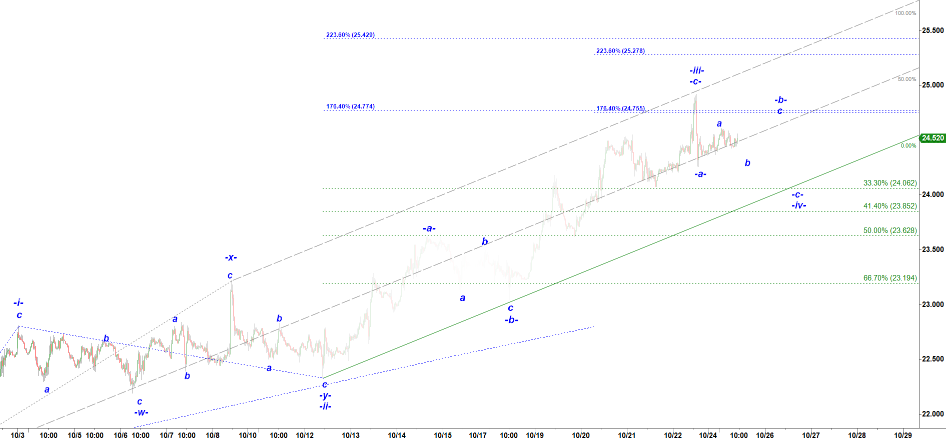Silver ignored my bearish (w)-(x)-(y) count and managed to make a higher high making possible to come back to th ebullish count: