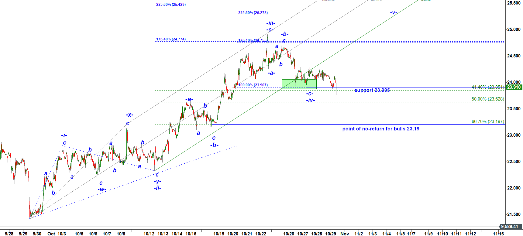 Most likely the next move up will make a lower high and will have a corrective structure.