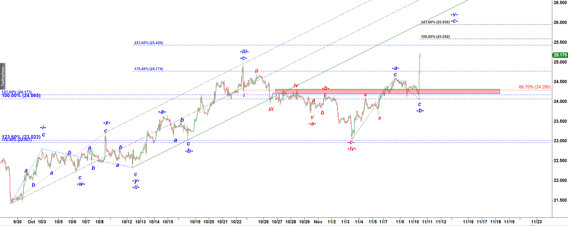 Silver produced a shallow a-b-c pullback in subwave -b- of wave -v- up and started a rally in subwave -c- of wave -v- up.