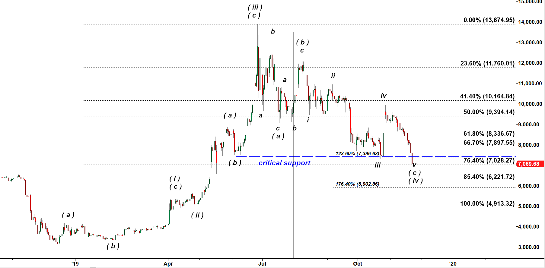 The bad news is Bitcoin violated the invalidation level at the low of subwave ( b ) down of wave ( iii ) up.