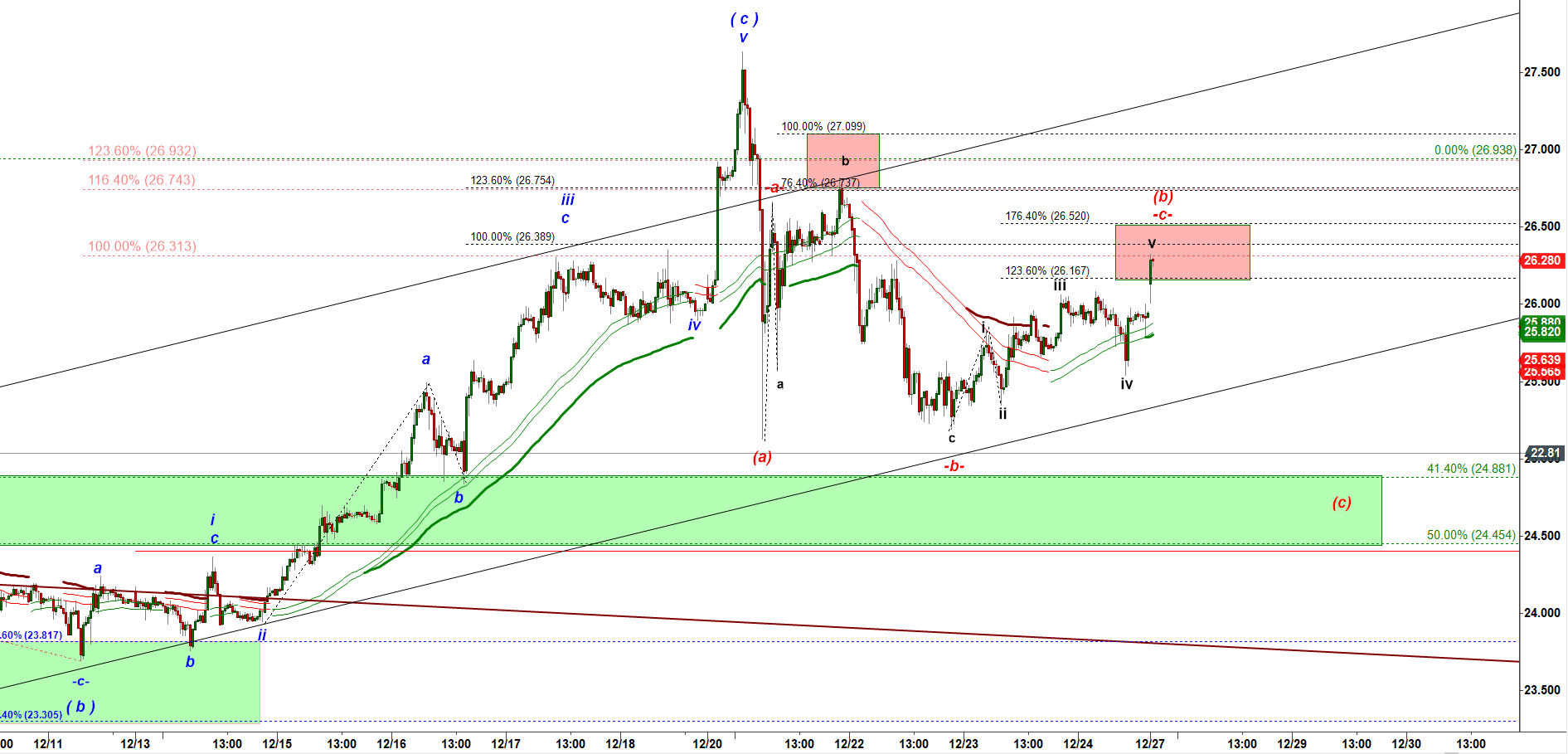 According to the wave count that is the top of a corrective wave ( b ) up to be followed by another decline in wave ( c ) down.