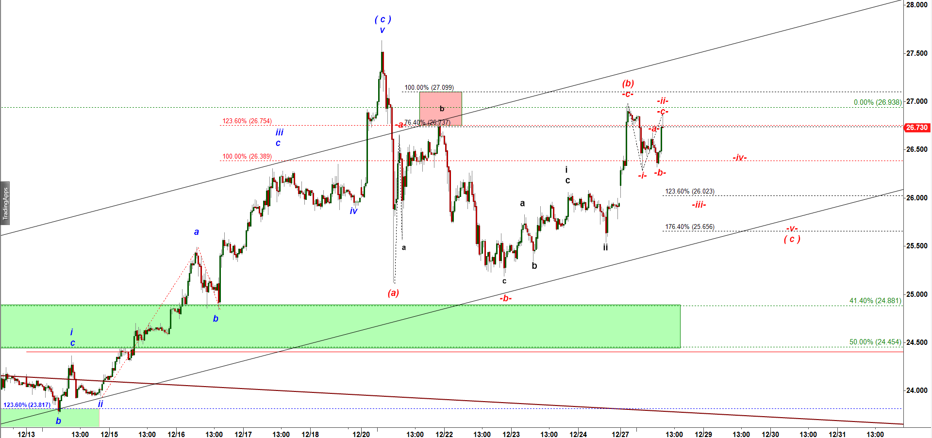 But I continue tracking the bearish scenario where the spike yesterday was a corrective subwave -b- up inside a bigger corrective wave ( b ) down.
