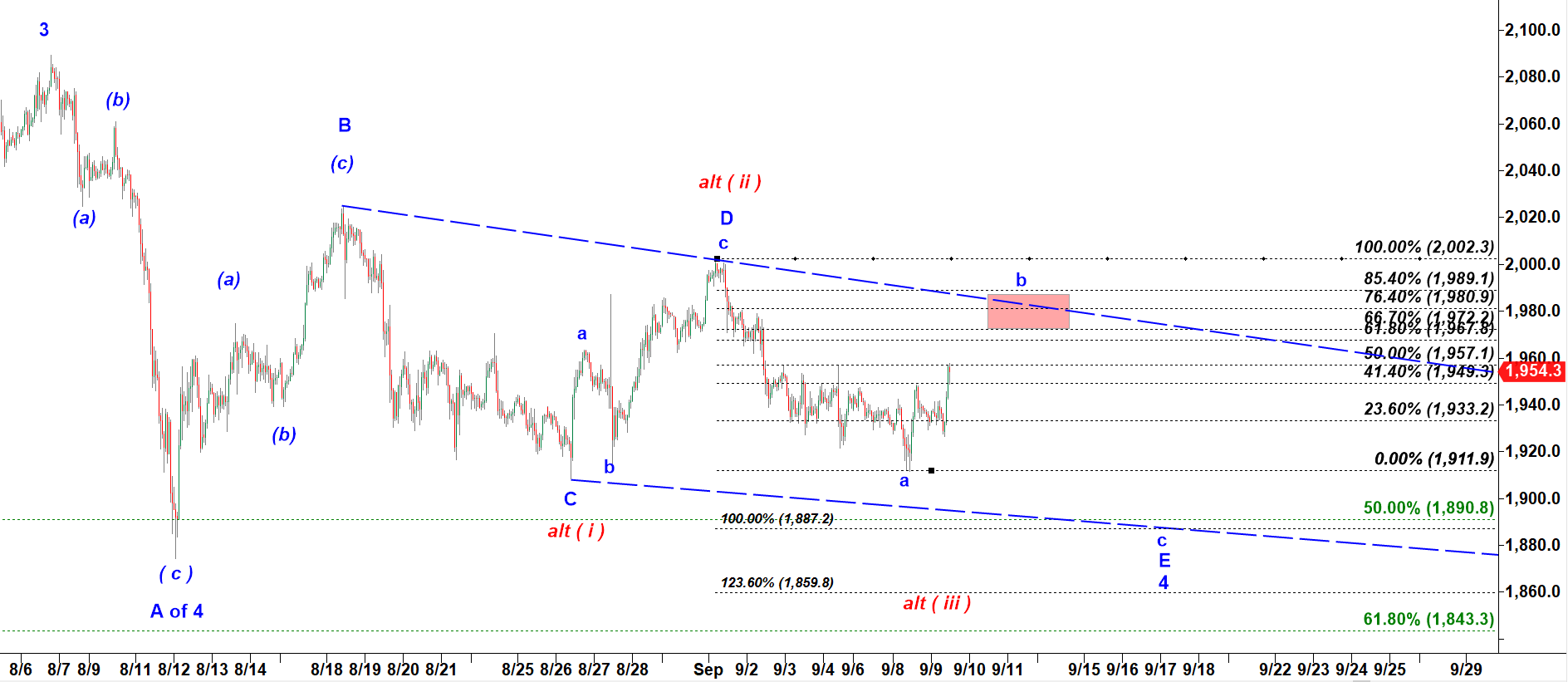 To confirm completion of the corrective wave 4 down we need bulls to push gold over the previous high made at 2,001.20 on Sep-1-2020.