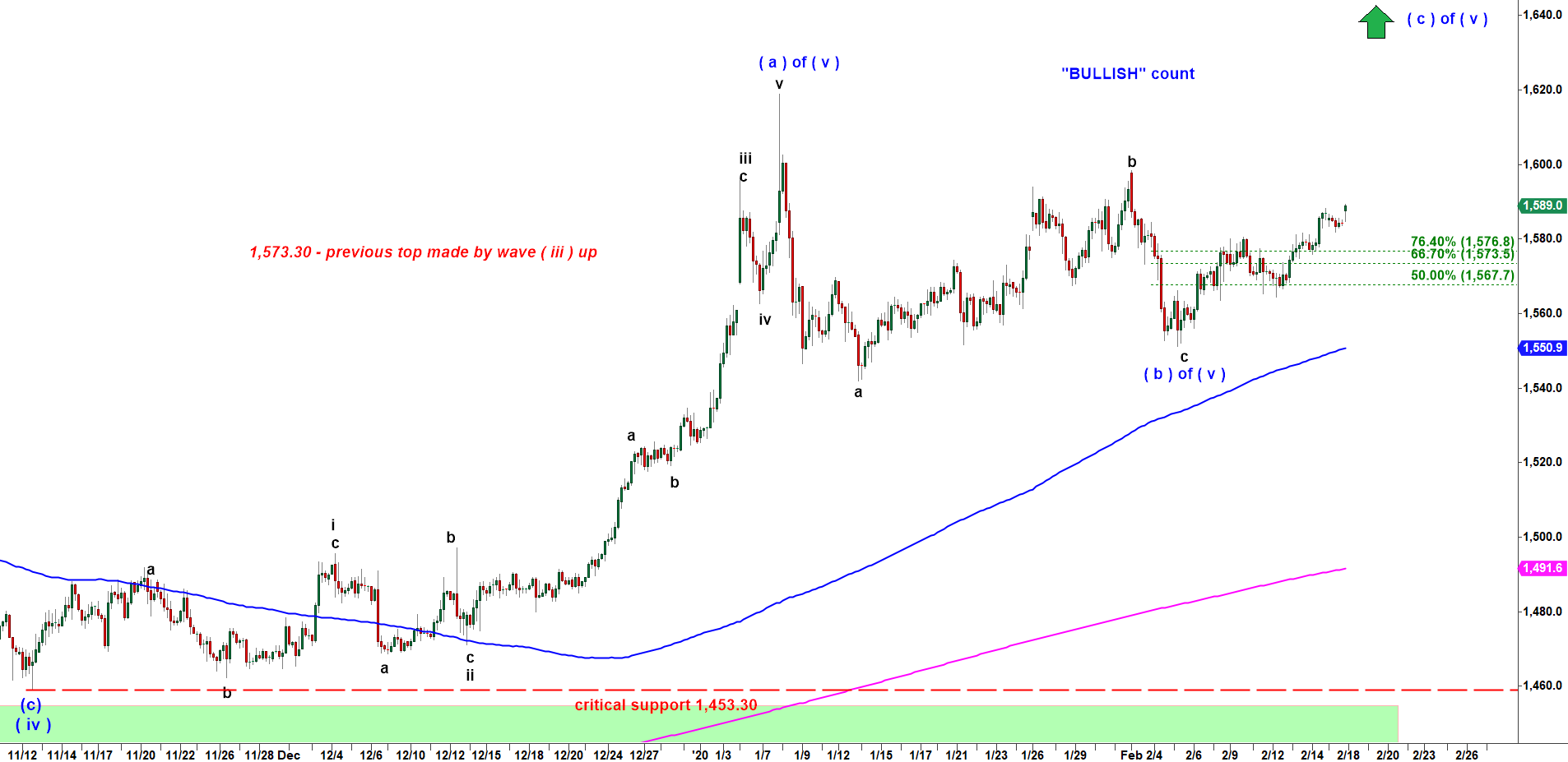 Early January Gold topped in subwave ( a ) of wave ( v ) up at 1,618.90