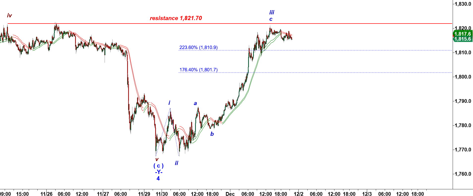 We need gold to make waves iv down followed by another push higher over resistance in wave v up to confirm it made a lasting bottom.