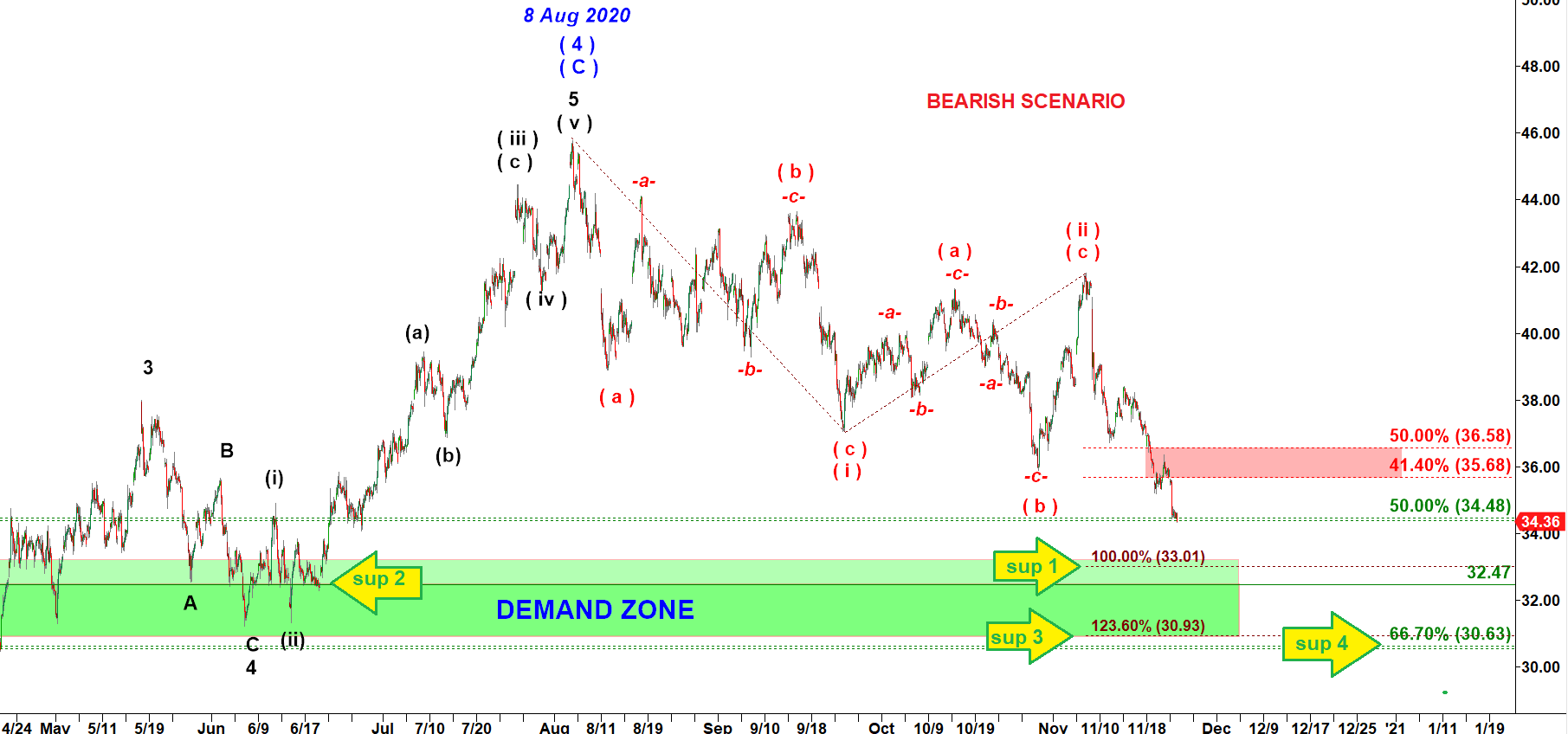 And, finally, the most important level is 30.63, the support no.4, located at 66.7% retracement of the whole preceding rally.