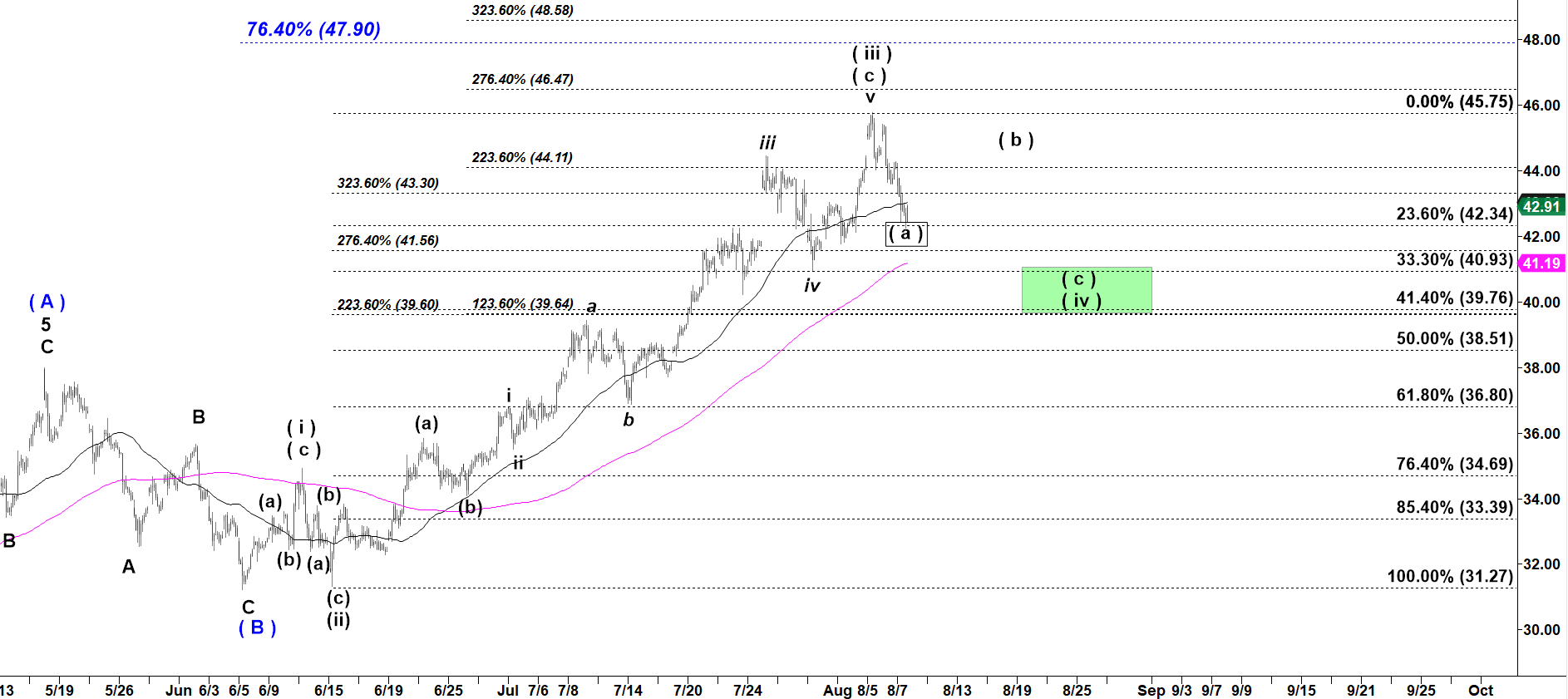 Gold holds the green target box for subwave ( a ) down so far.