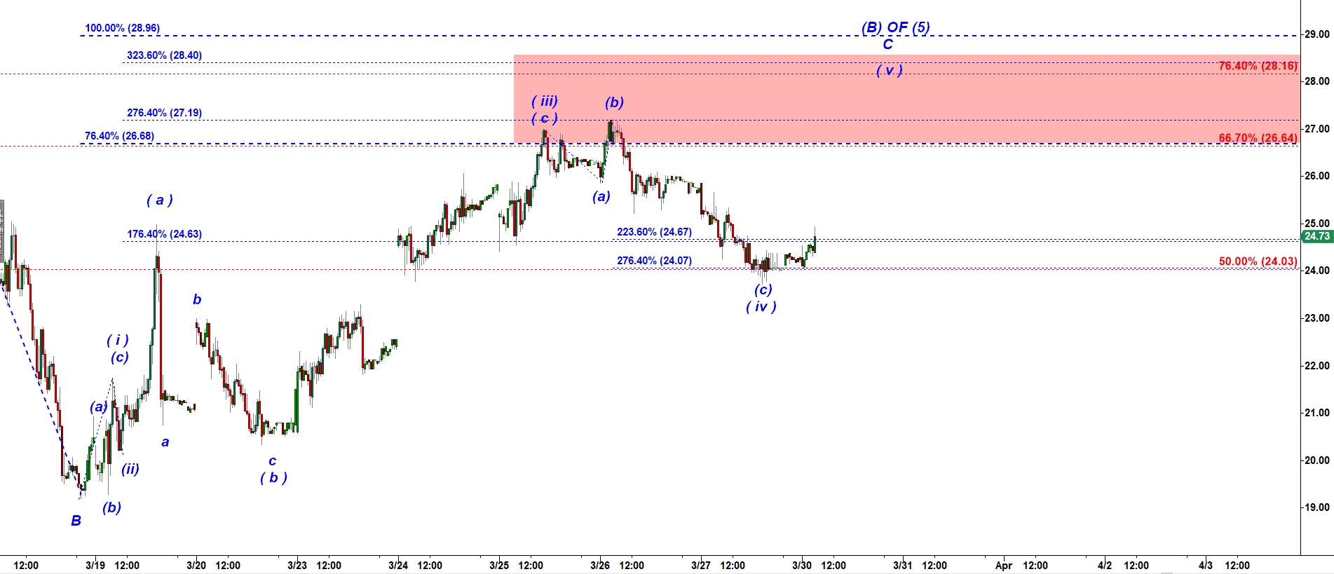 On a Daily chart that bounce off the low made at 16.18 on March 16, 2020 looks like a corrective A-B-C correction.
