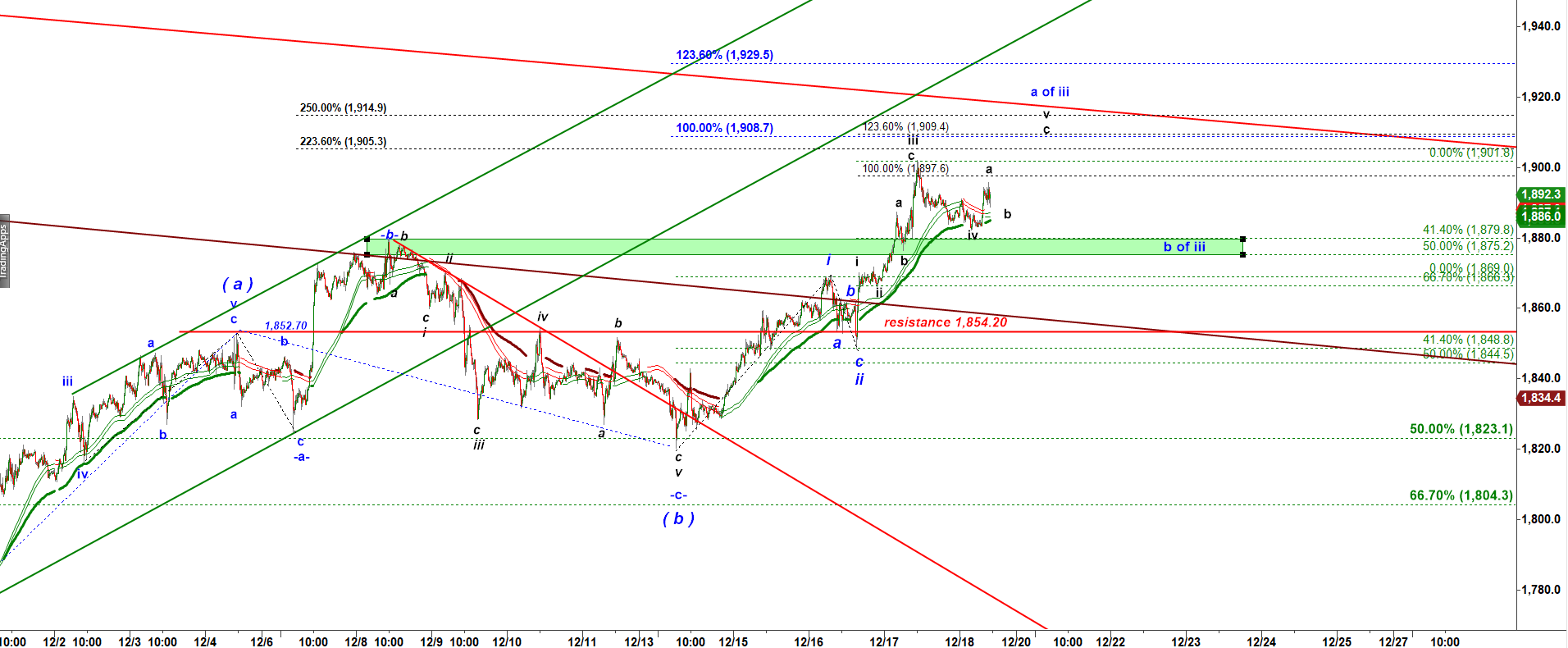 We still wait for silver to stretch higher and tag the Red Target box before it makes a pullback in subwave ( b ) down of wave ( iii ) up.