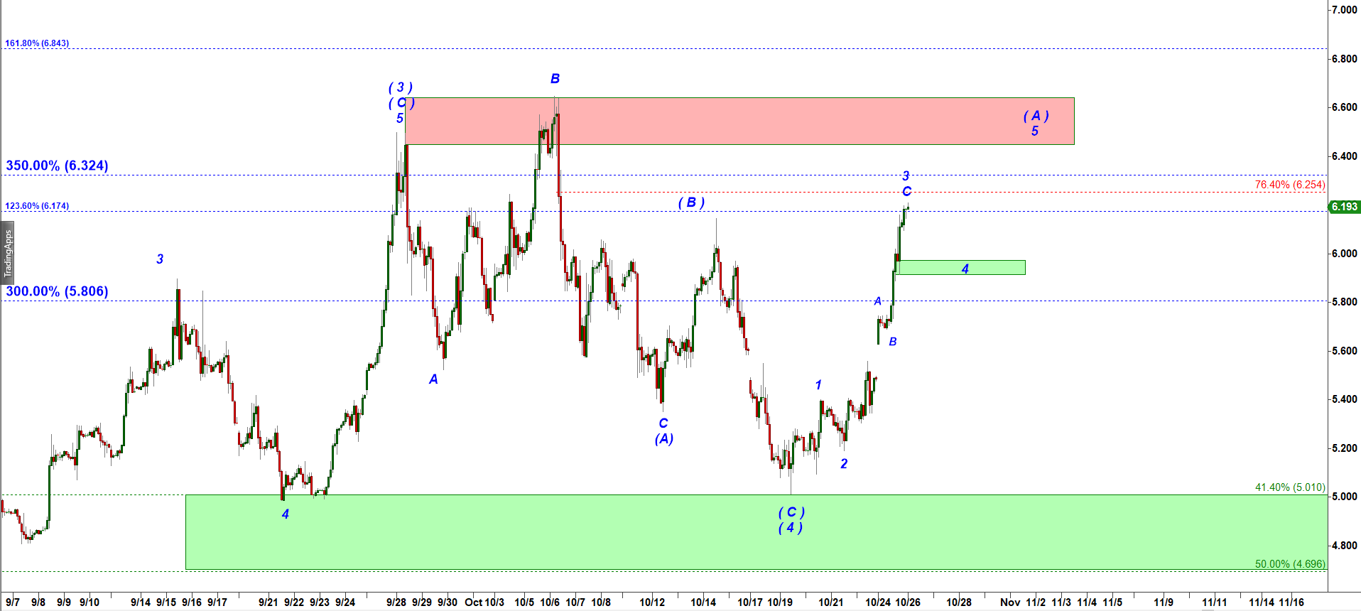 After that pullback it should push higher one more time to 6.450 – 6.600 in wave 5 of (A) of ( 5 ).