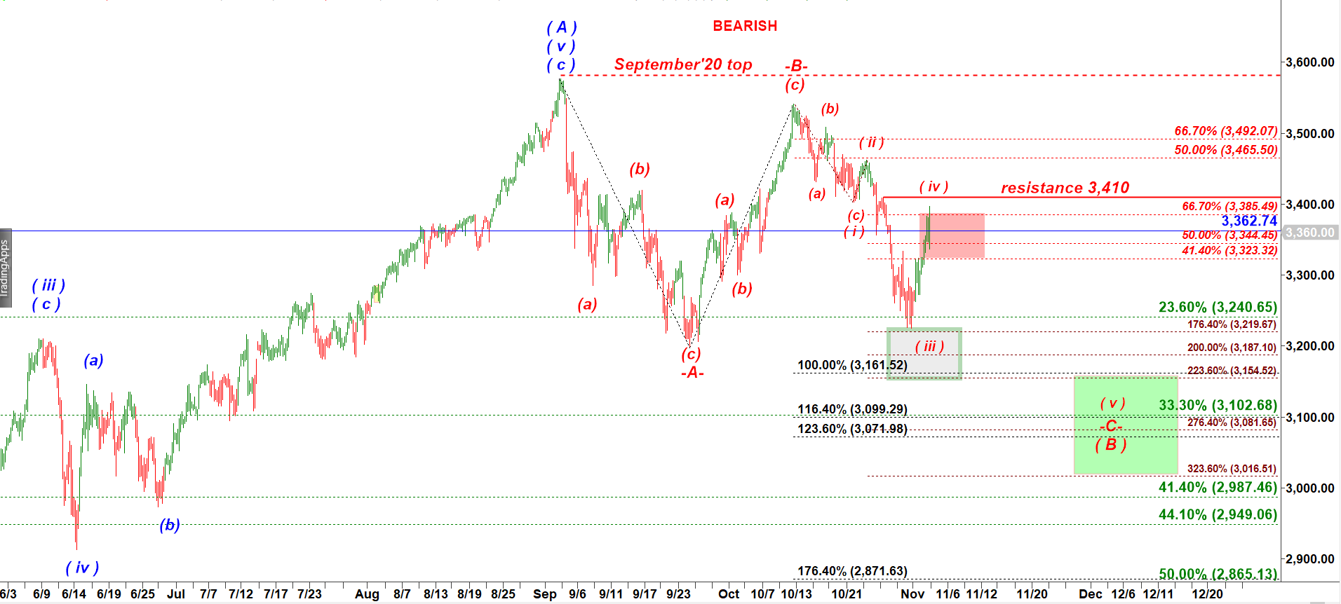 Bears have a setup to drive ES down to 3,250 by Wednesday