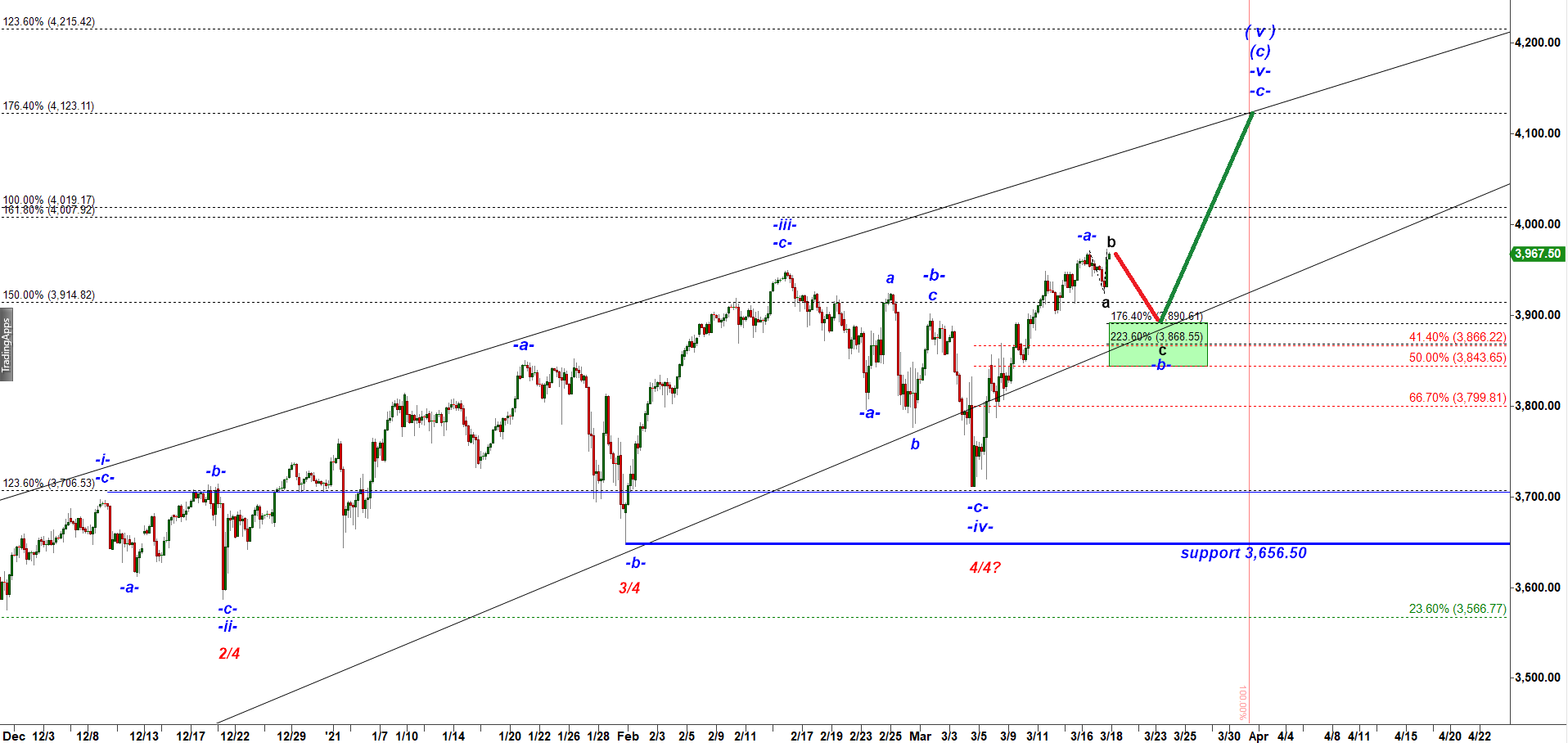 However, we should keep in the back of our minds a bullish alt scenario where the drop that I currently expect would hold the same magic 3,860 level completing a corrective a-b-c down structure.