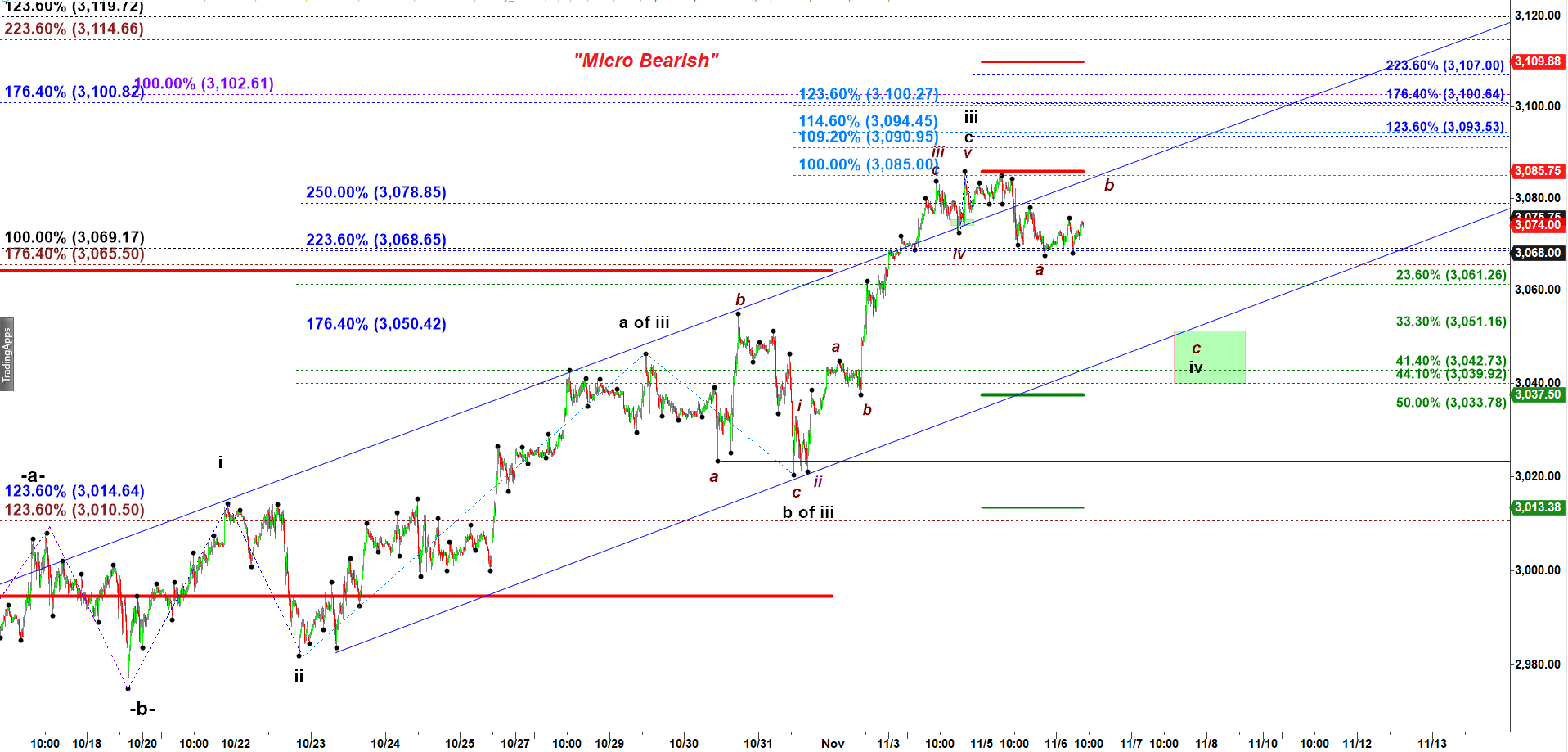 ES - not clear if a micro wave iii up has topped or needs one more push to a higher high