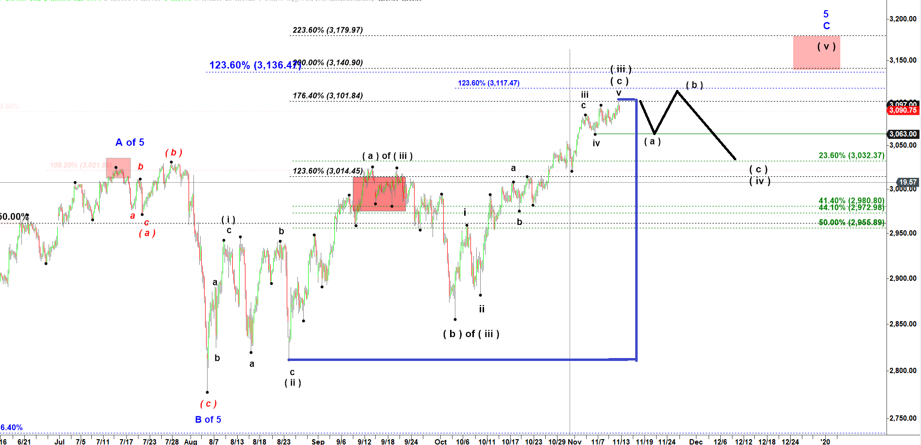 This is a bigger picture showing on 240 min chart below a potential (a)-(b)-(c) pullback in a corrective wave ( iv ) down.