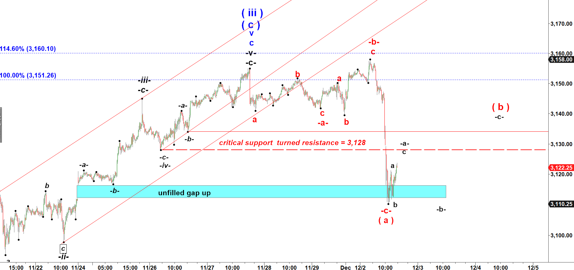 And after that, finally a rally in subwave -c- up should complete a large corrective wave ( b ) up.