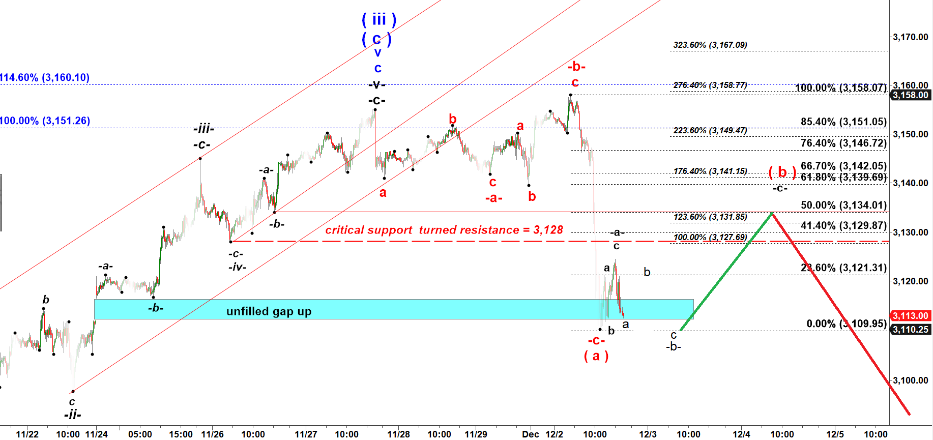 That drop after hours may be only micro a down and we can get more whipsaw for -b- down before a rally in -c- of ( b ) up.