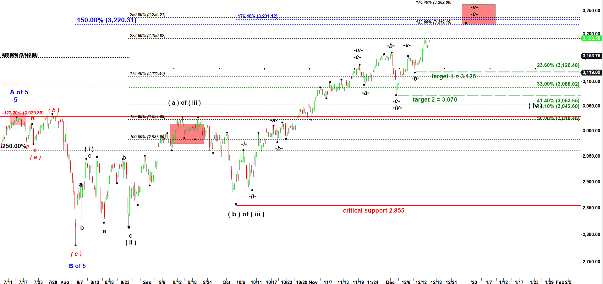 wave ( iii ) = 250% of wave ( i ) up = 3,235, and