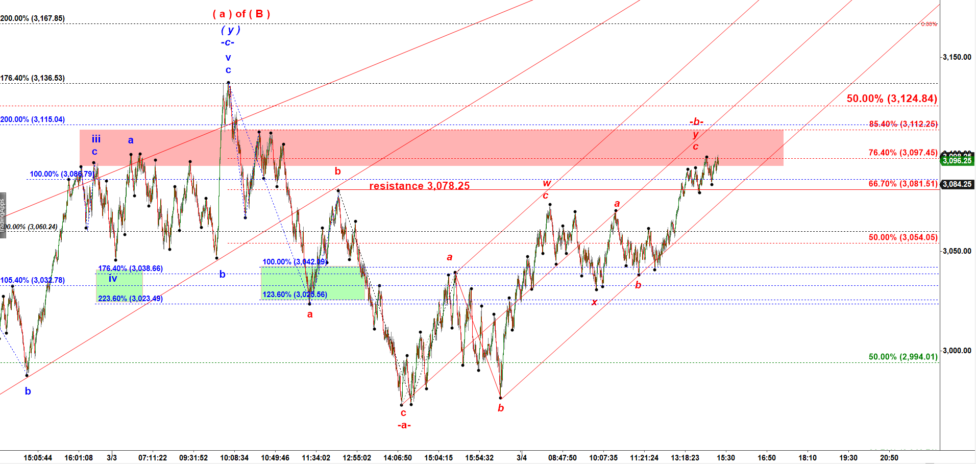 ES has entered the Red Supply Zone. The structure off the low made on Tuesday looks like a corrective W-X-Y structure.
