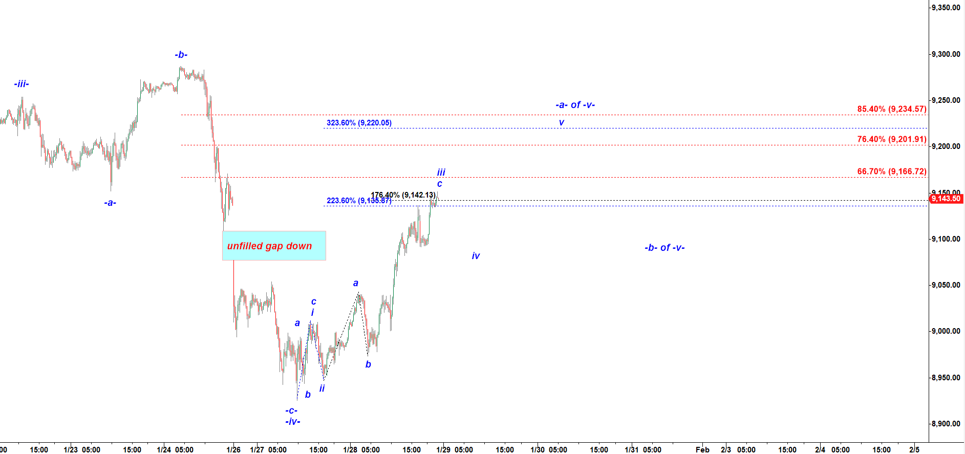 NQ - 15 min chart updated at 10-30 PM on 1-28-2020