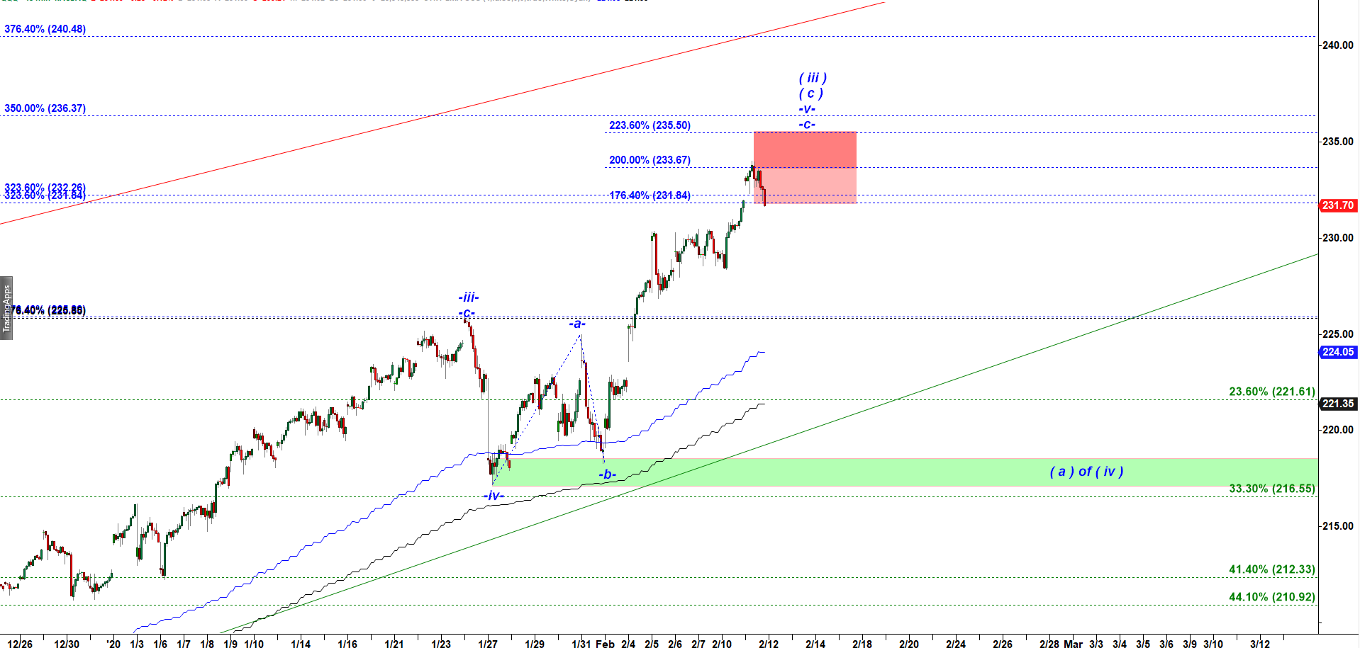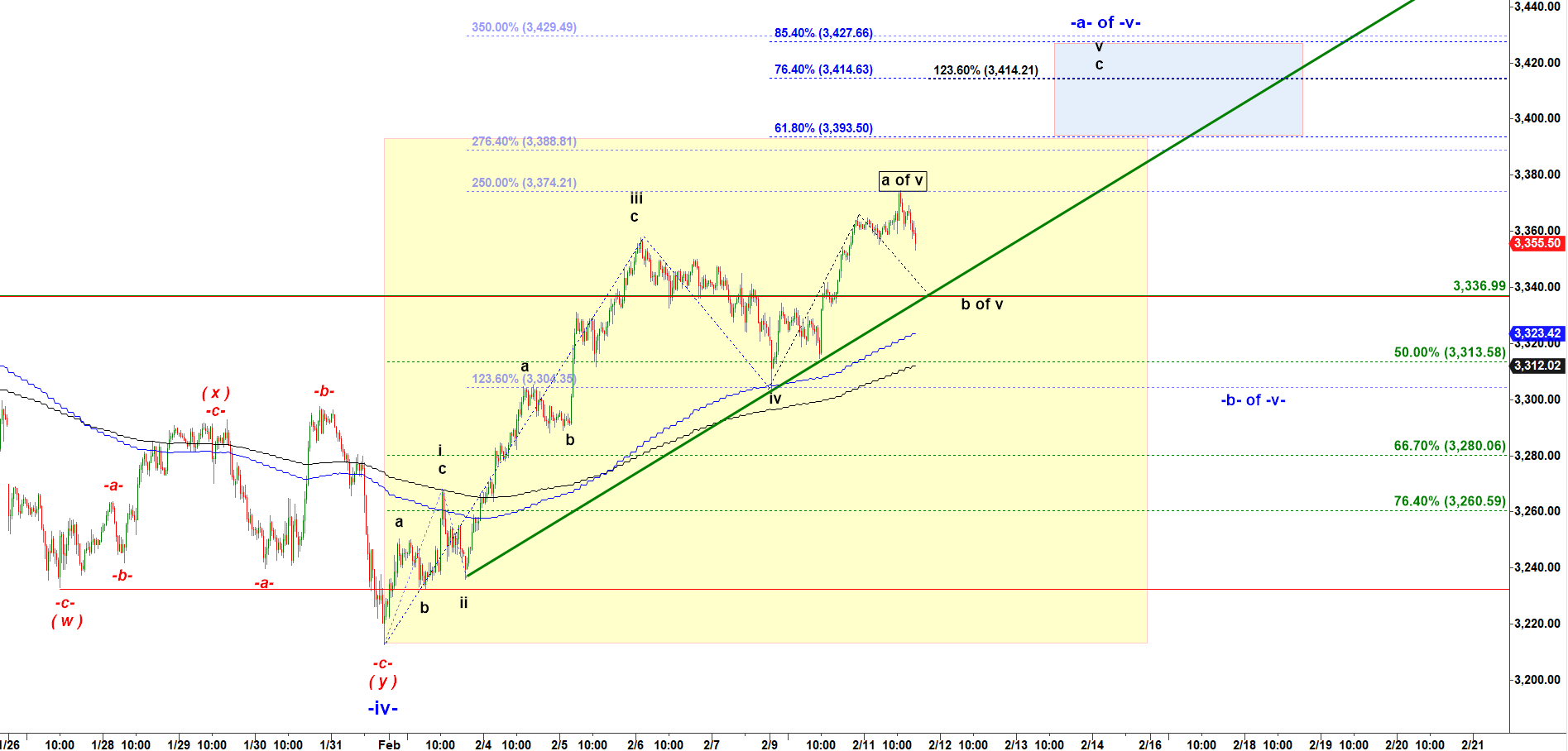 It topped in what could be subwave a of v and started decline in a corrective subwave b down.