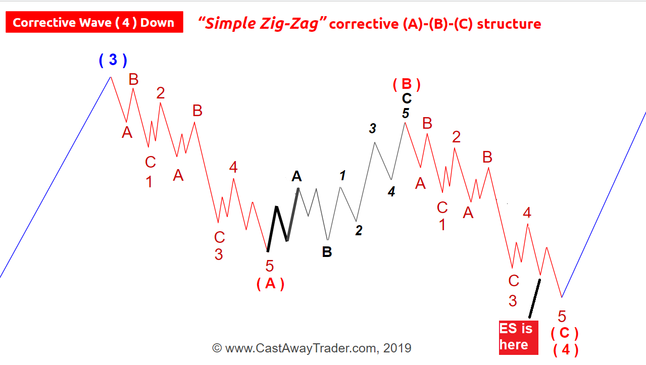 Below you can see where ES is located in that corrective (A)-(B)-(C) down fractal.