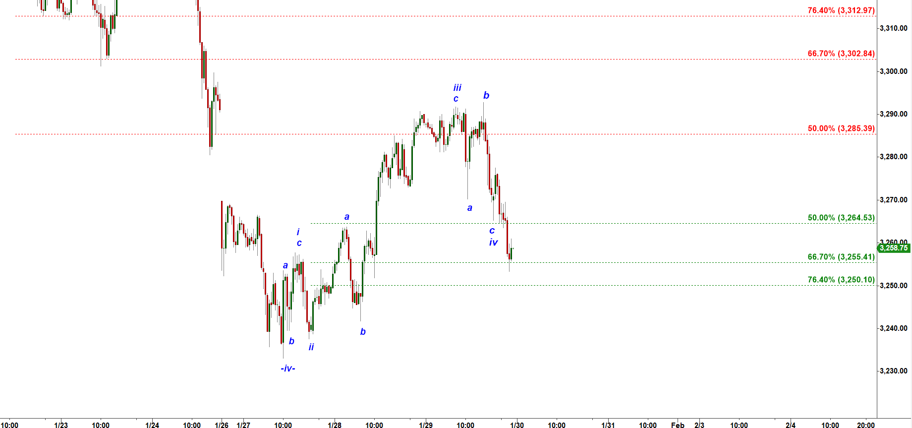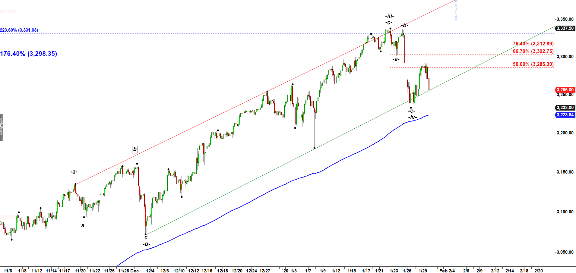 ES - 240 min chart updated at 10-30 PM on 1-29-2020