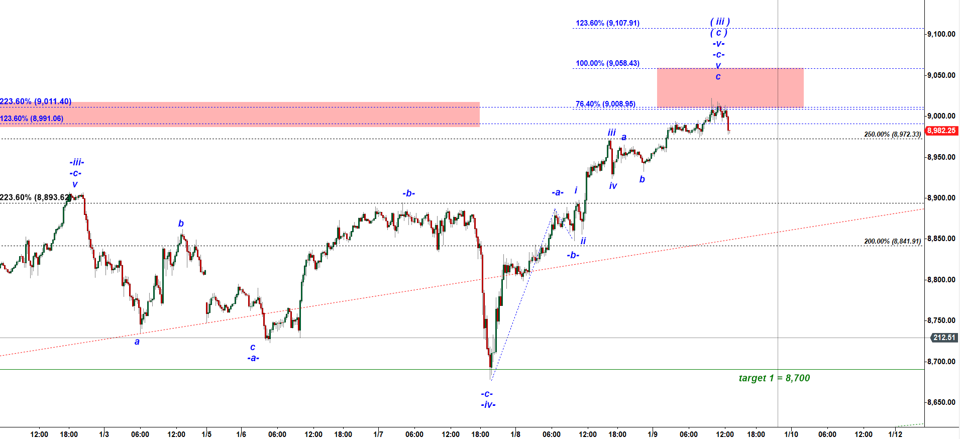 As always to confirm a bearish reversal we need NQ to drop under the previous support at 8,923.75.