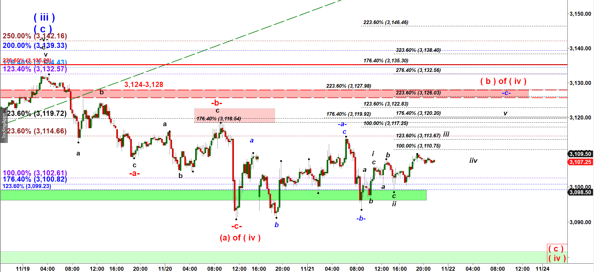 The perfect topping zone for this subwave -c- of wave ) b ) up in ES starts at 3,120.