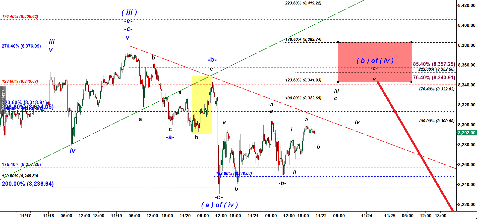 The perfect topping zone for this subwave -c- of wave ( b ) up in NQ starts at 8,340.