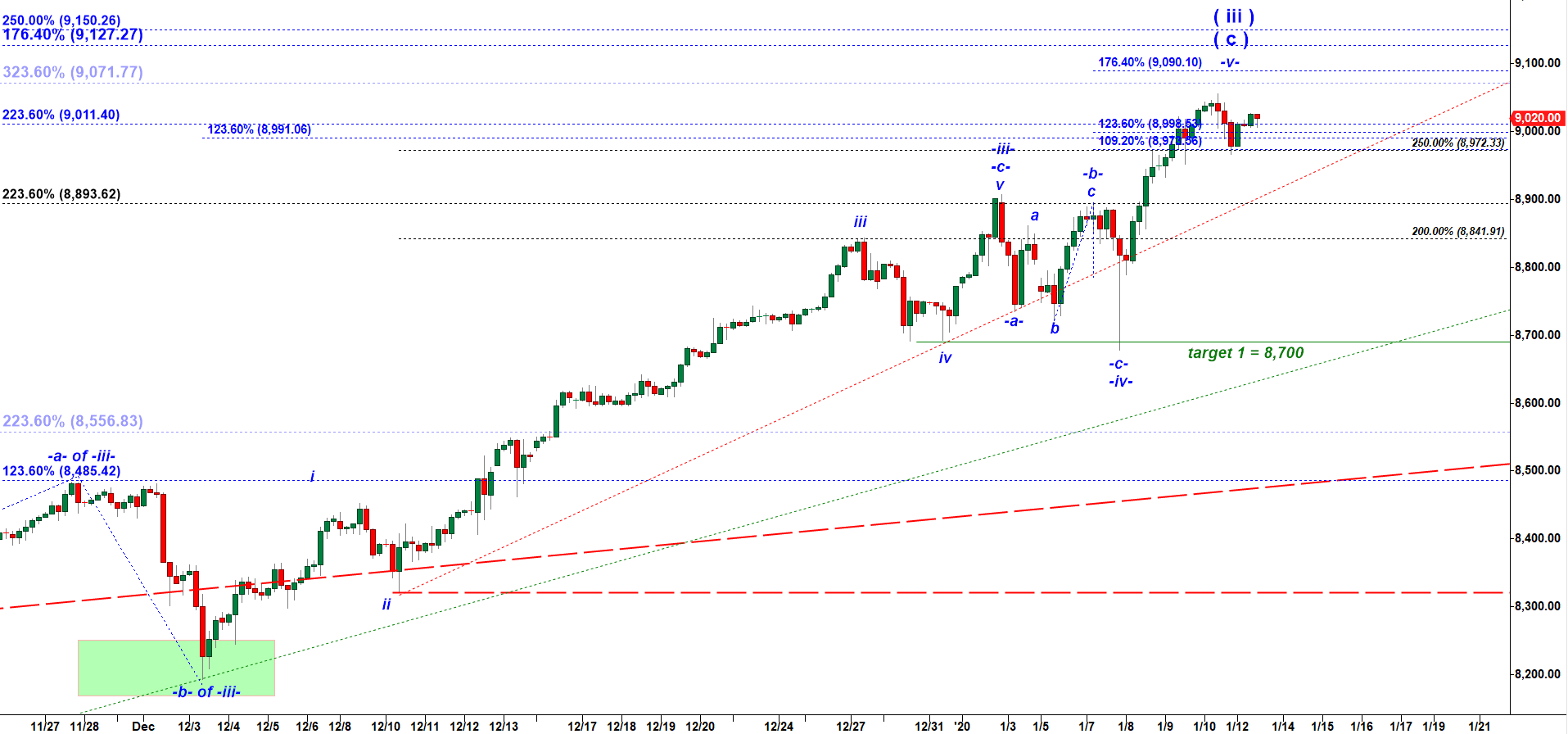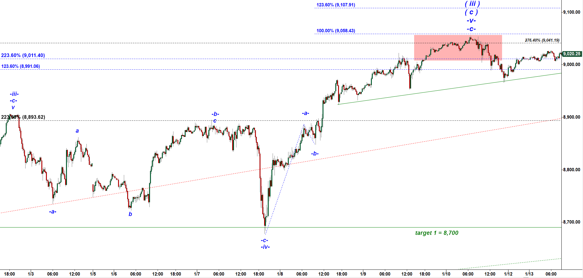 The problem is the move off that overnight low made at 8,678 should have a-b-c up structure.