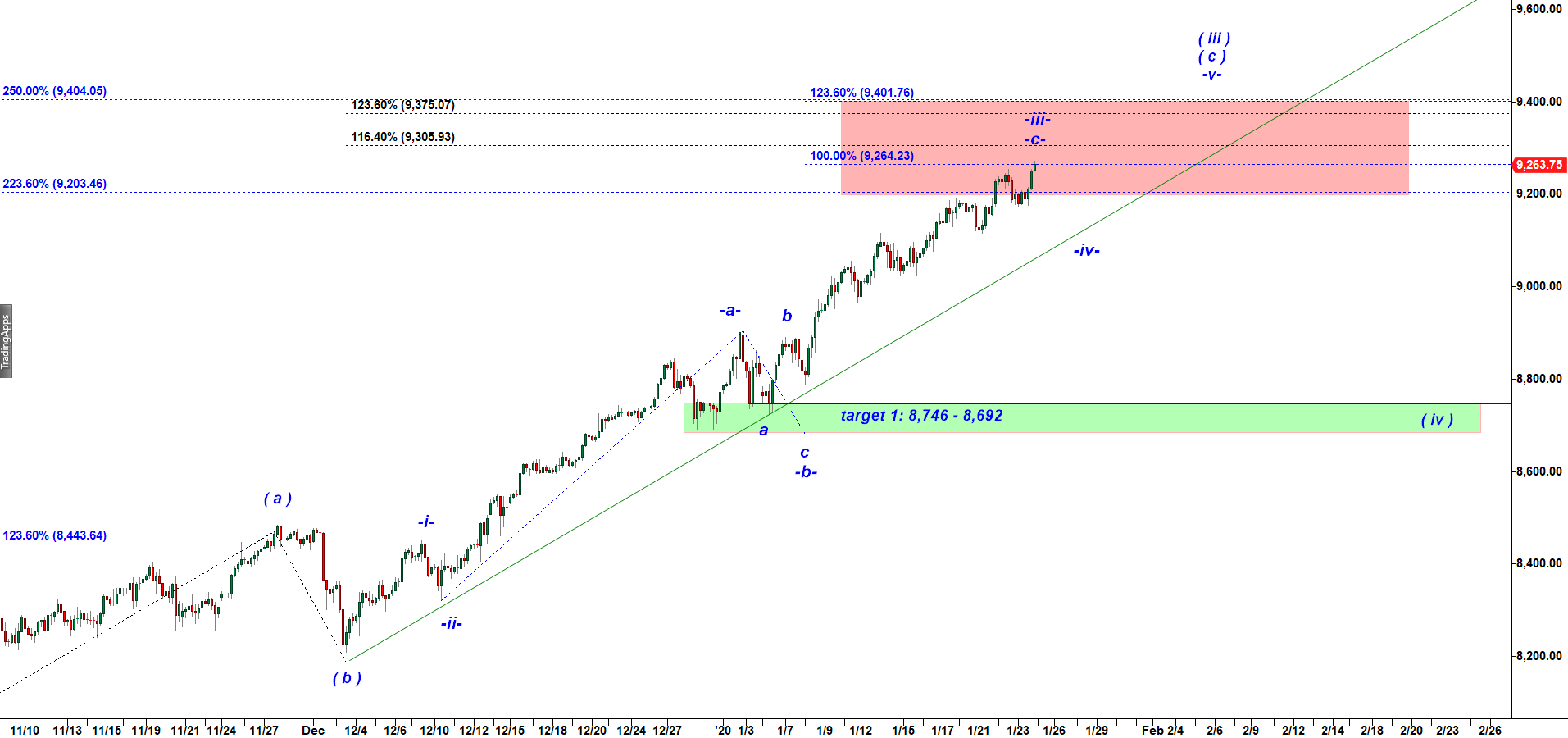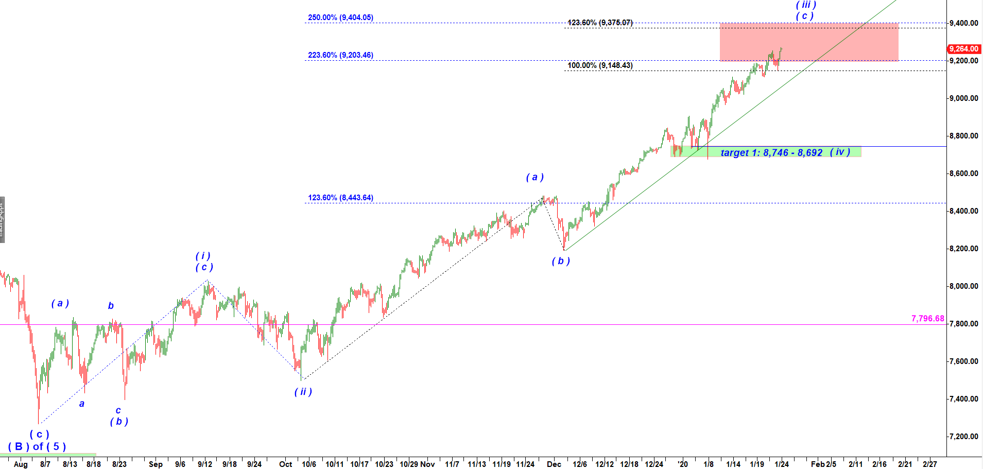 Looking at 240 min chart we can see why subwave ( c ) of wave ( iii ) is so difficult to trade. It keeps grinding higher leaver bears behind. All pullbacks are very quick and shallow.