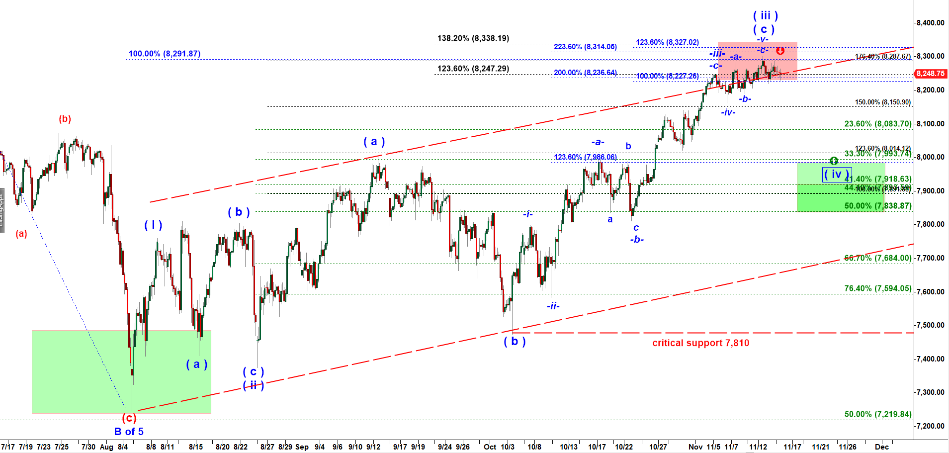 NQ needs to break under that thick red trend line to start move down in wave ( iv ) down.