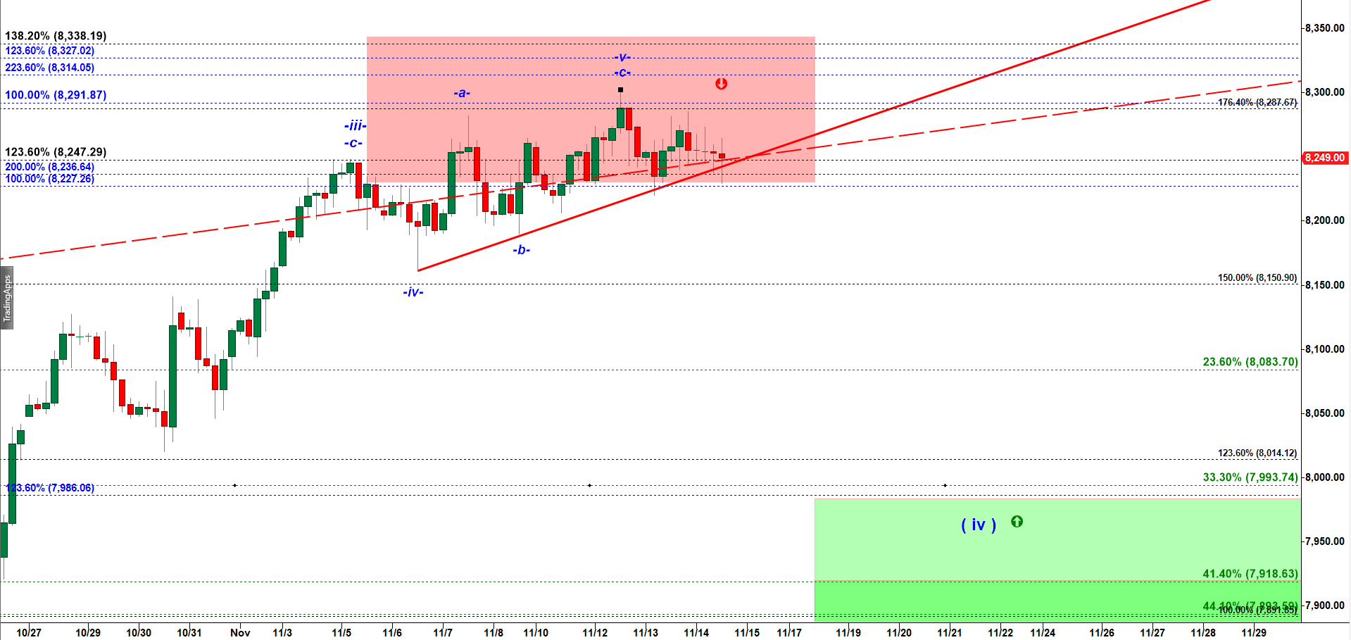 NQ got stuck inside the Red Target box for the top of wave ( iii ) up.