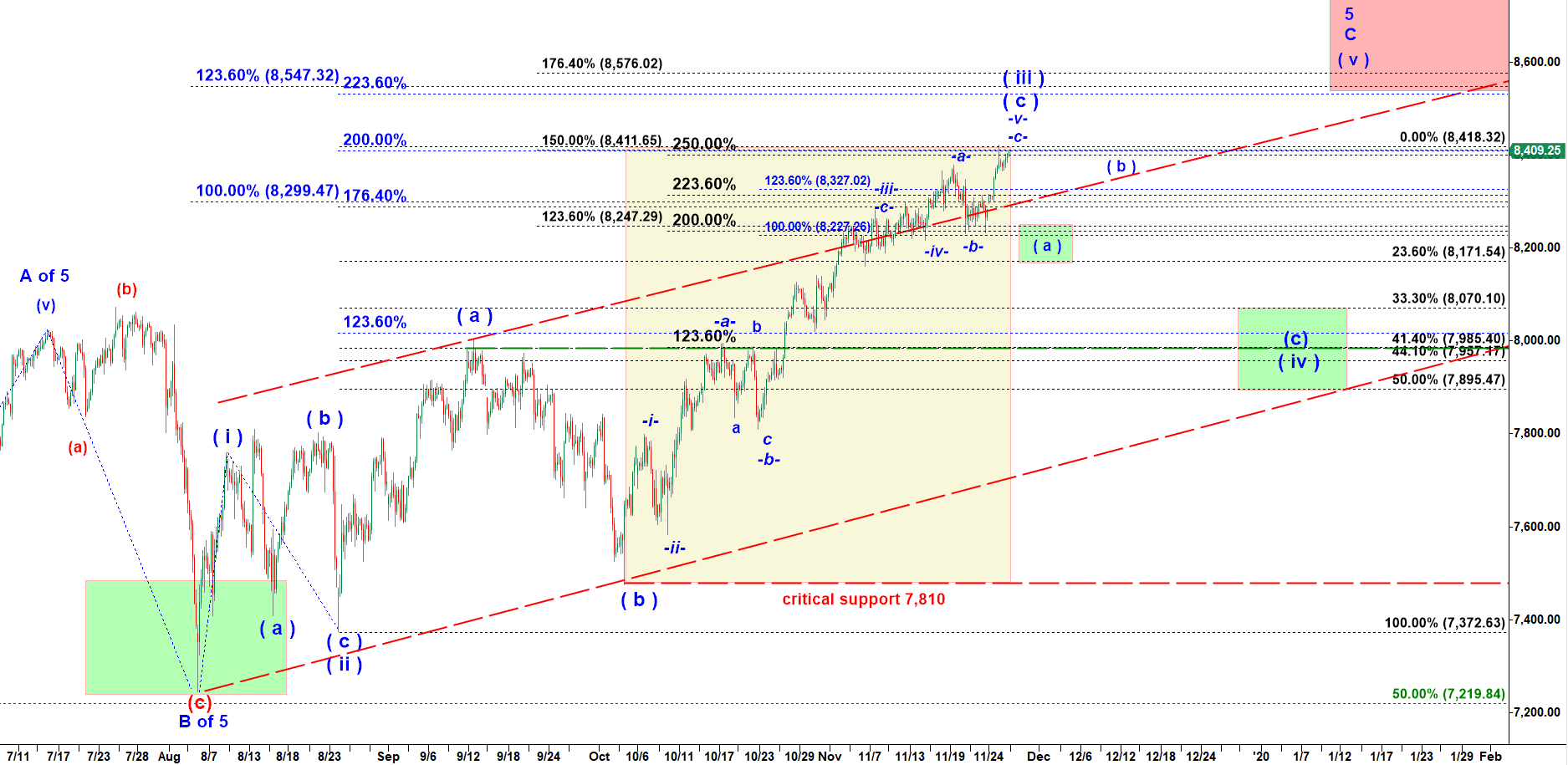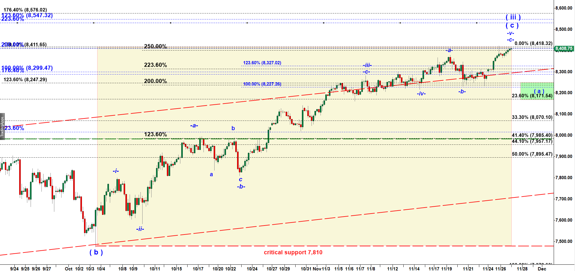 It is located at 8,366.25. Violation of that level would be the first confirmation of the completion of the whole structure of wave ( iii ) up.