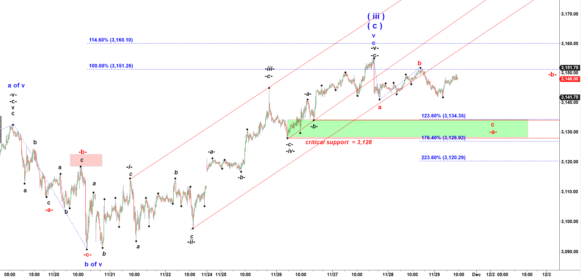 Not only it has not tested the minor support at 3,128 yet but the second leg down failed to make a lower low under the low made by subwave a down.