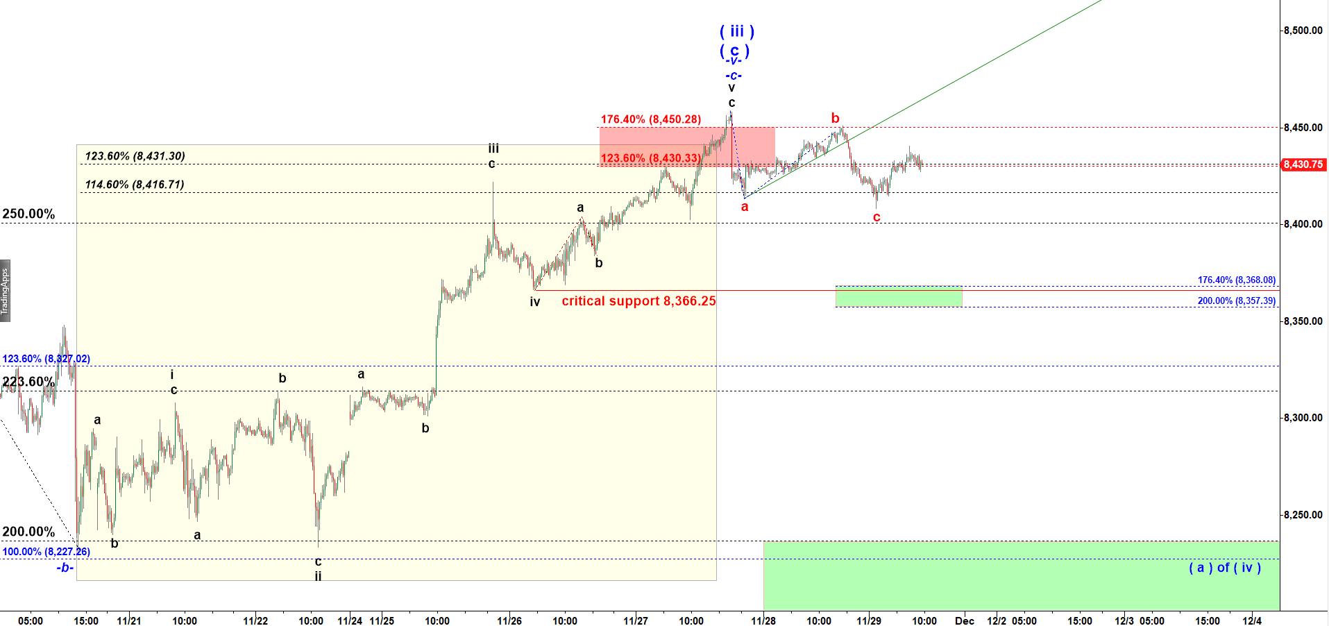 That micro a-b-c- down may be micro wave i down followed by a corrective ii up. And NQ may continue moving lover in a micro wave iii down targeting that minor support level.