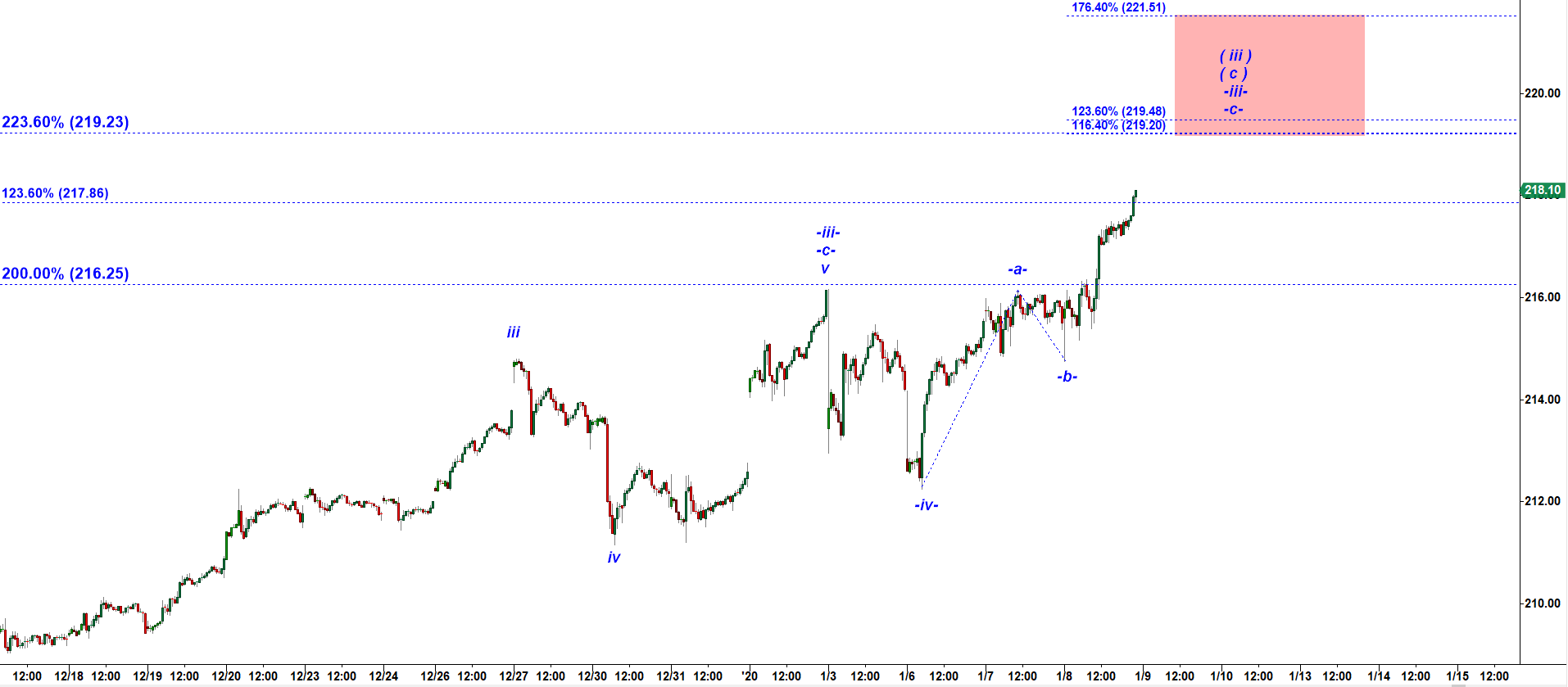 QQQ - 45 min chart updated at 3-38 PM on 1-8-2020